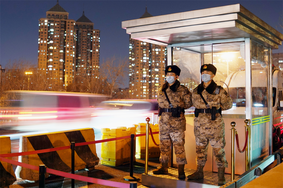 圖為武警星夜堅守,保障群眾平安出行。