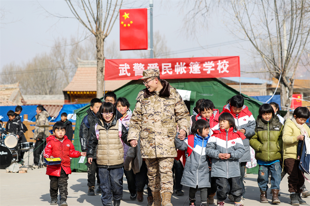 壓題圖為在甘肅省積石山縣劉集鄉(xiāng)肖家村文化廣場(chǎng),武警甘肅總隊(duì)機(jī)動(dòng)支隊(duì)官兵在野戰(zhàn)炊事車上為受災(zāi)群眾制作熱食;在高李村臨時(shí)安置點(diǎn),武警甘肅總隊(duì)醫(yī)院醫(yī)生與“武警愛民帳篷學(xué)校”的孩子們一起做游戲。侯崇慧 攝