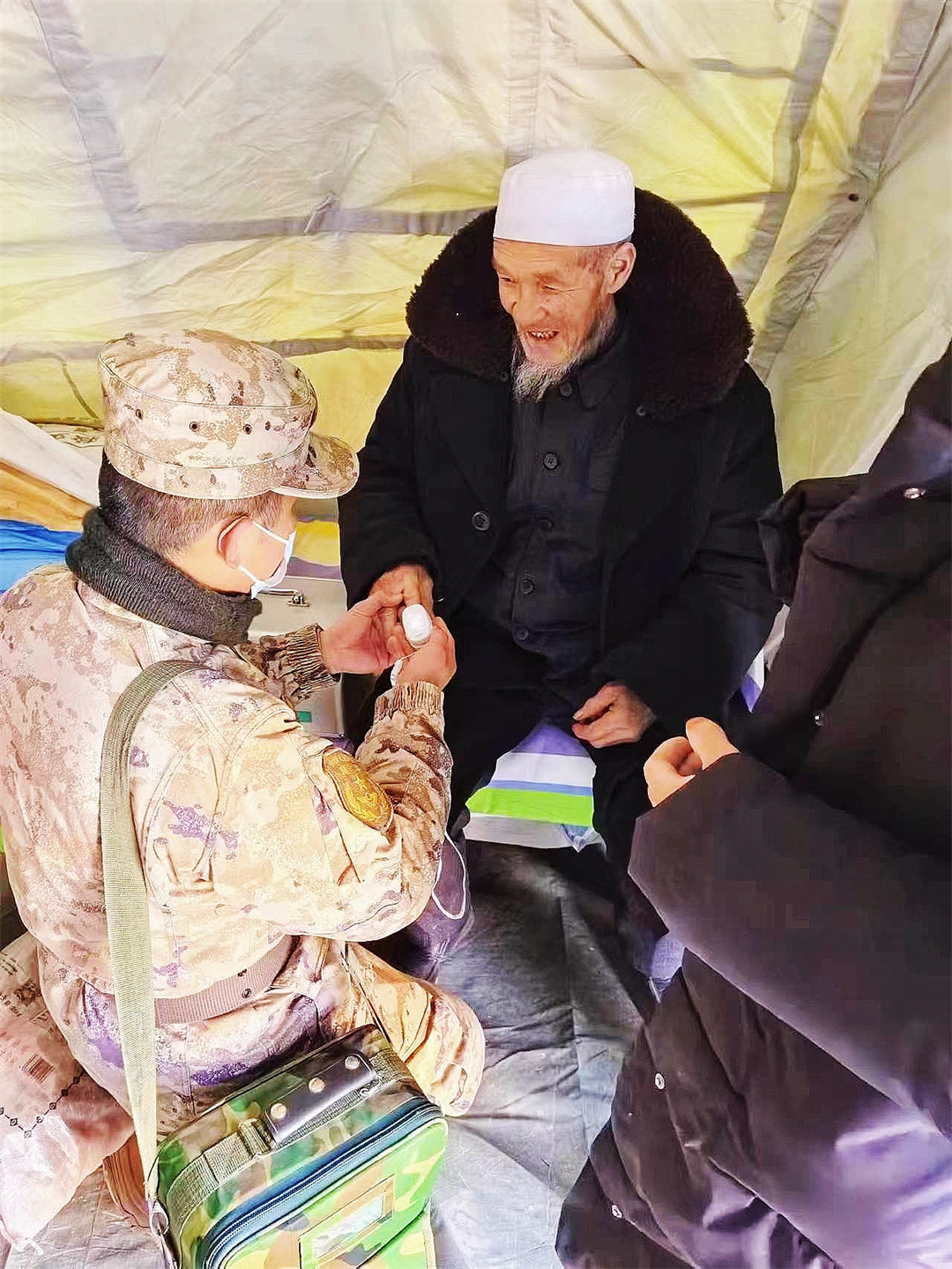 第940醫(yī)院醫(yī)療隊(duì)分赴積石山縣柳溝鄉(xiāng)、石塬鎮(zhèn)、劉集鄉(xiāng)和大河家鎮(zhèn),為受災(zāi)群眾查體診療、送醫(yī)送藥。他們還成立心理服務(wù)隊(duì),在提供健康查體、送醫(yī)送藥等服務(wù)基礎(chǔ)上,為有需要的受災(zāi)群眾開展一對(duì)一心理疏導(dǎo)。為解決偏遠(yuǎn)村莊受災(zāi)群眾就診難的問題,應(yīng)急醫(yī)療分隊(duì)成立黨員先鋒模范醫(yī)療組,翻山越嶺、走村入戶,持續(xù)開展送醫(yī)送診服務(wù)。