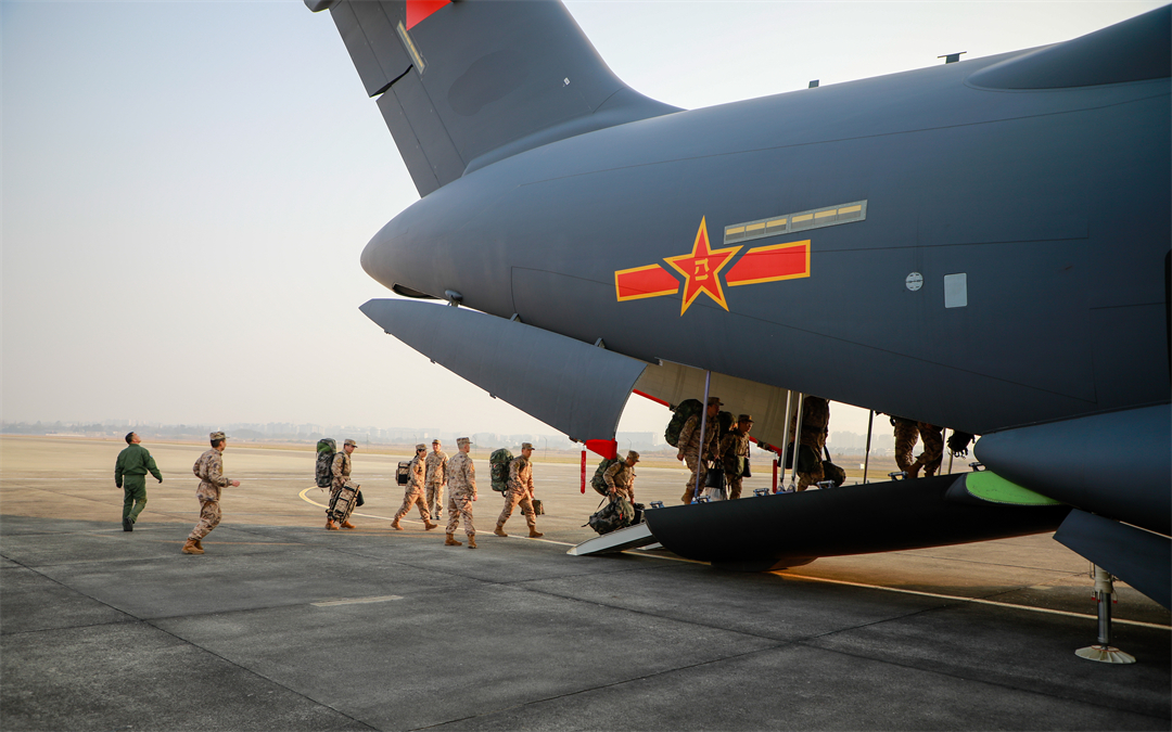 停機(jī)坪上,冷風(fēng)撲面。西部戰(zhàn)區(qū)空軍任務(wù)機(jī)組帶隊(duì)機(jī)長梁瑤一邊進(jìn)場(chǎng)一邊與機(jī)組成員研究,修訂多套特情處置預(yù)案,機(jī)務(wù)官兵按線路完成飛行前檢查。隨后,裝載人員、物資14噸的運(yùn)-20起飛。