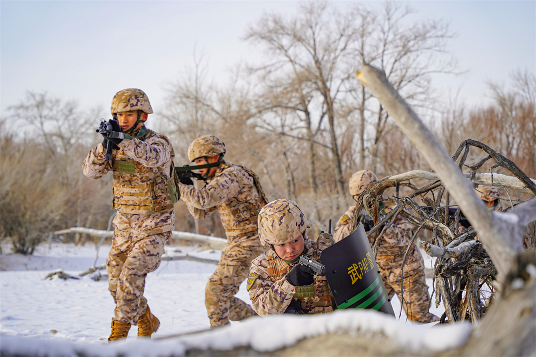 開訓(xùn)首日,武警部隊(duì)數(shù)十萬將士云集沙場(chǎng),武警部隊(duì)黨委號(hào)召全體官兵立起練兵備戰(zhàn)鮮明導(dǎo)向,堅(jiān)持以戰(zhàn)領(lǐng)訓(xùn)、大抓基礎(chǔ)訓(xùn)練,創(chuàng)新合成訓(xùn)練、深化科技練兵。武警內(nèi)蒙古總隊(duì)某支隊(duì)依托駐地氣候和地形條件,模擬真實(shí)戰(zhàn)場(chǎng)環(huán)境,組織官兵開展實(shí)戰(zhàn)化課目訓(xùn)練,全面錘煉部隊(duì)在實(shí)戰(zhàn)下的綜合作戰(zhàn)能力。