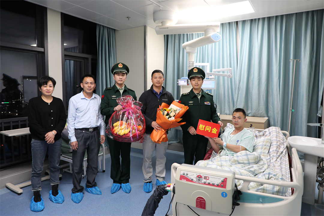 圖為武警廣東總隊(duì)、武警江門(mén)支隊(duì)看望慰問(wèn)陳凱松。