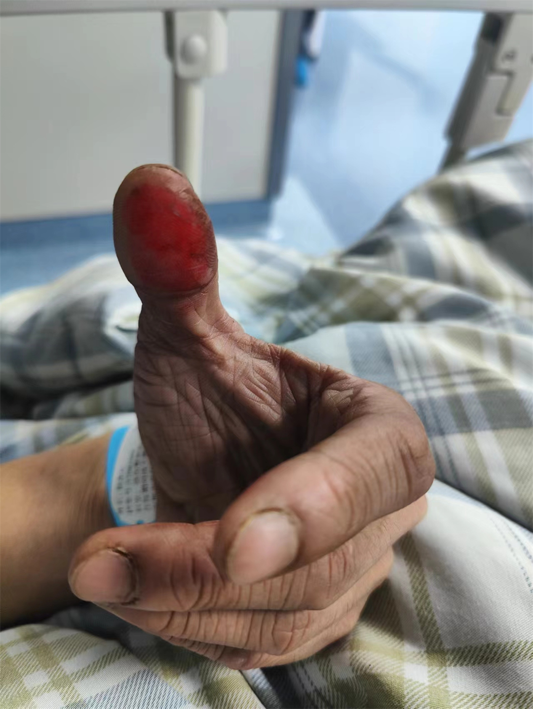 圖為陳凱松救火時(shí)被燙傷的手指。