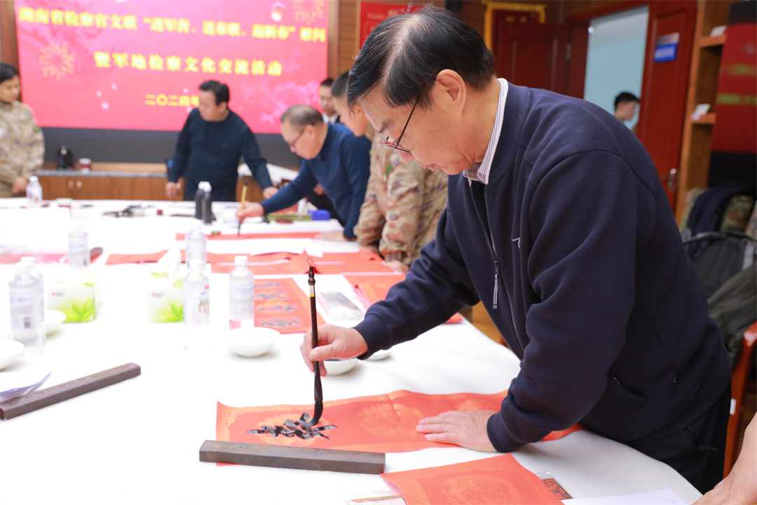 近日,解放軍長沙軍事檢察院攜手湖南省人民檢察院政治部、湖南省檢察官文聯(lián)開展“進軍營、送春聯(lián)、迎新春”慰問暨軍地檢察文化交流活動。