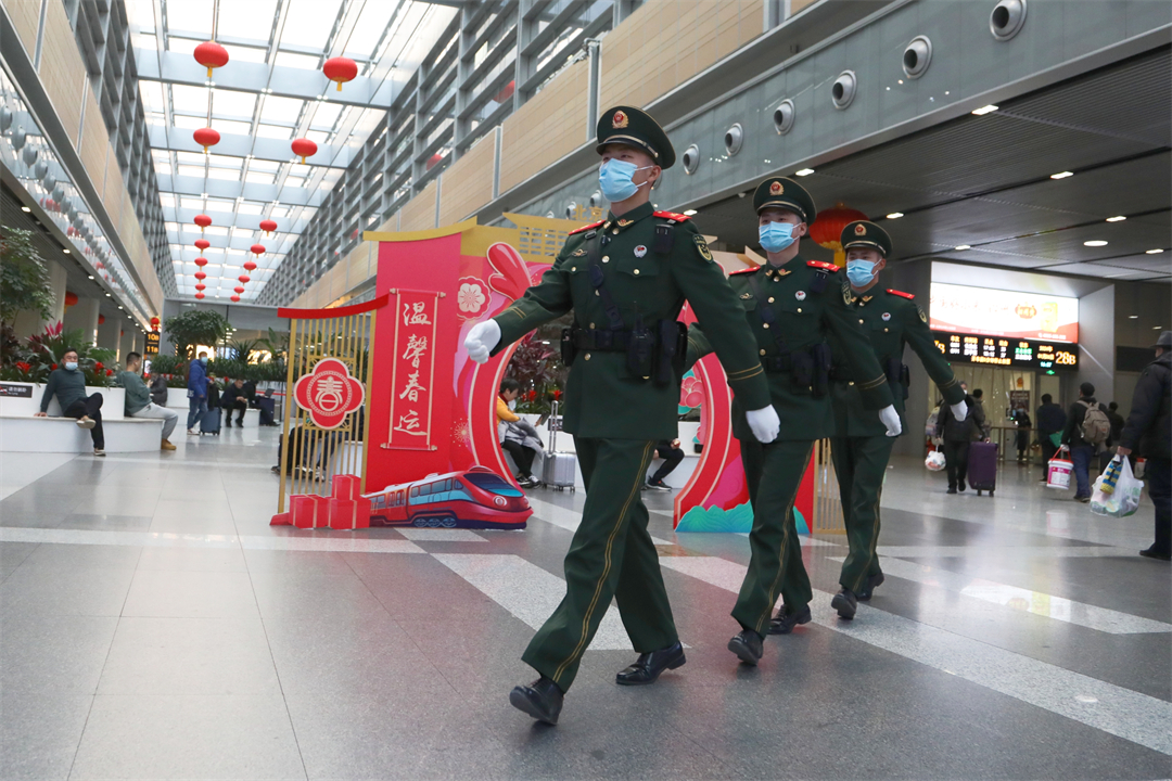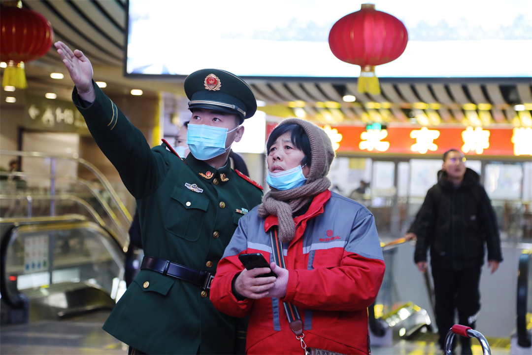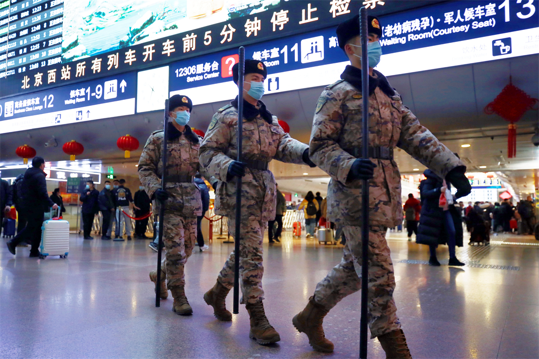 1月26日,全國春運正式拉開帷幕。擔(dān)負(fù)北京西站守衛(wèi)任務(wù)和北京豐臺站定點警戒任務(wù)的武警北京總隊執(zhí)勤第六支隊官兵堅守執(zhí)勤戰(zhàn)位,熱心為群眾提供幫助,以實際行動溫暖守護旅客歸鄉(xiāng)路。