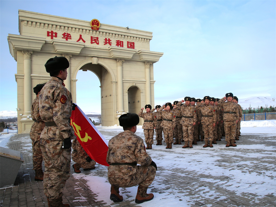在祖國(guó)北疆的國(guó)門前,全體人員面向黨旗莊嚴(yán)宣誓。大家緊握的拳頭堅(jiān)定有力,鏗鏘的誓言響徹云霄,表達(dá)著對(duì)黨忠誠(chéng)的堅(jiān)定信仰和為國(guó)防事業(yè)不懈奮斗的決心。