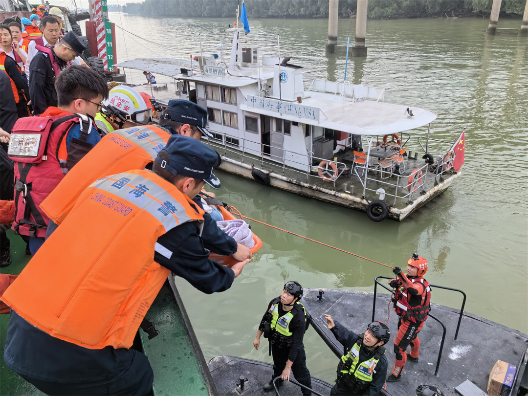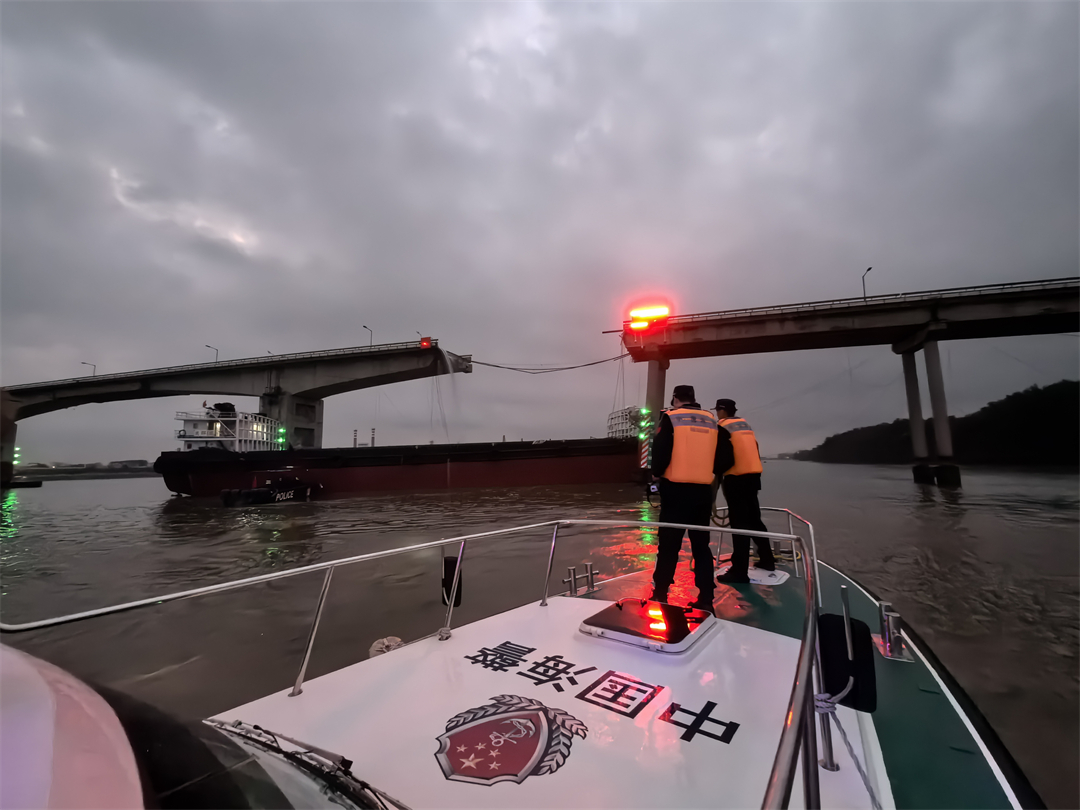 2月22日6時(shí)許,廣州海警局接報(bào)警,南沙瀝心沙大橋被撞,橋體斷裂,橋上有車輛落水,情況危急請(qǐng)求救援。接警后,廣州海警局立即啟動(dòng)海上應(yīng)急救援預(yù)案,指派21523、21141等執(zhí)法艇第一時(shí)間到達(dá)事發(fā)海域,聯(lián)合消防、公安、海事等單位開展緊急救援。