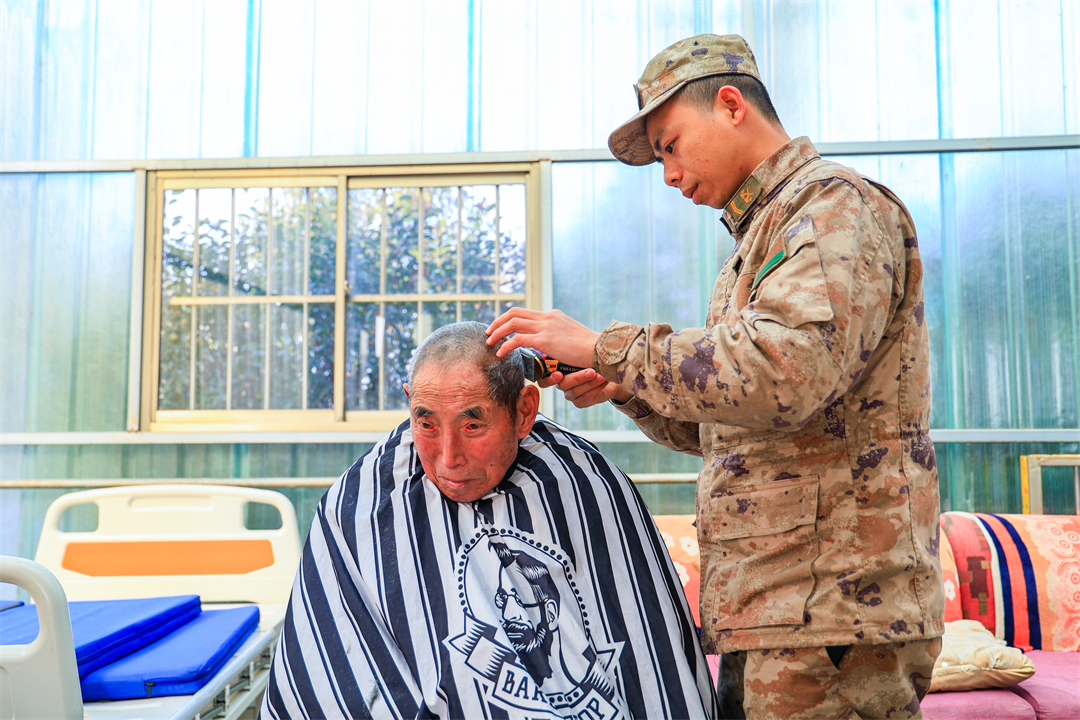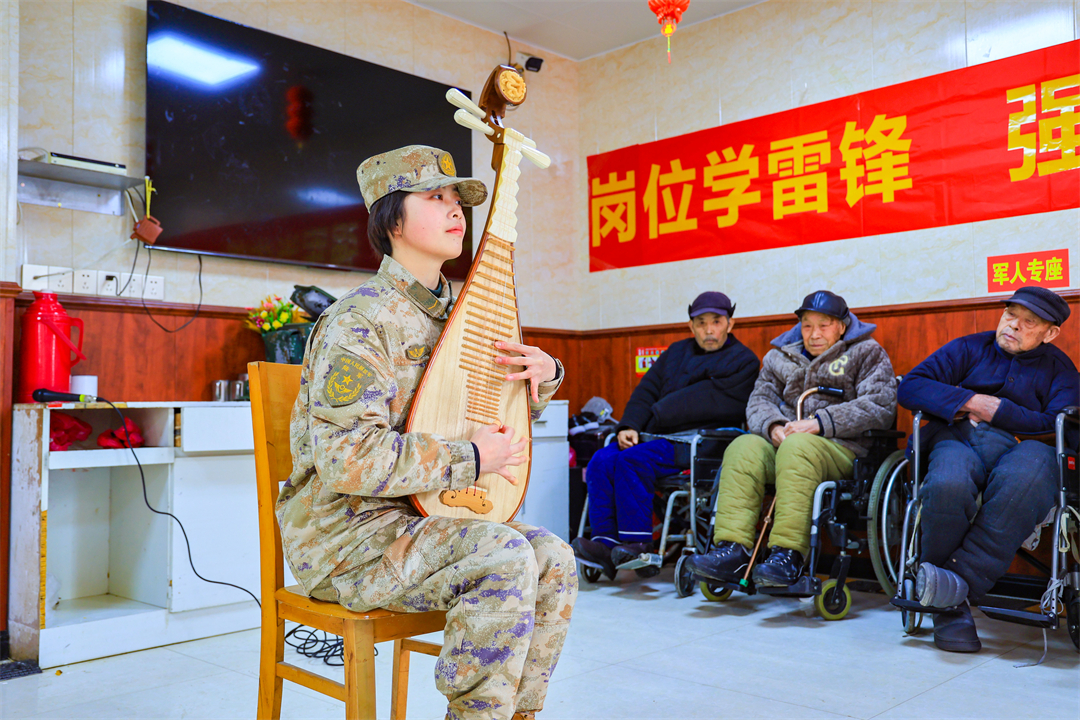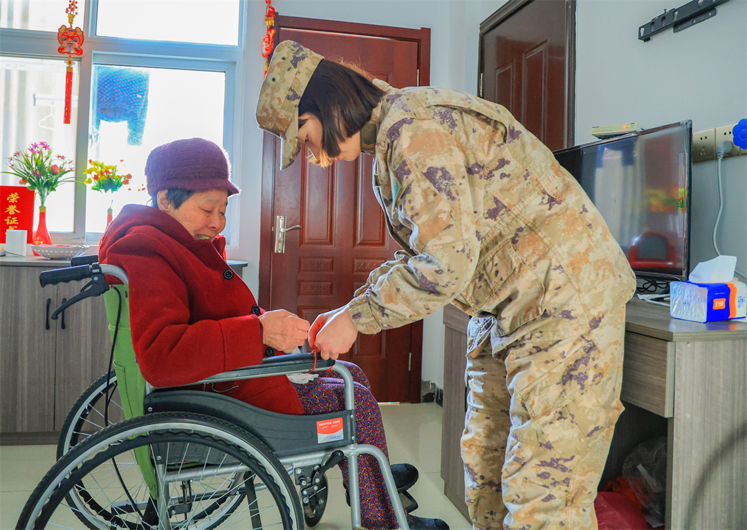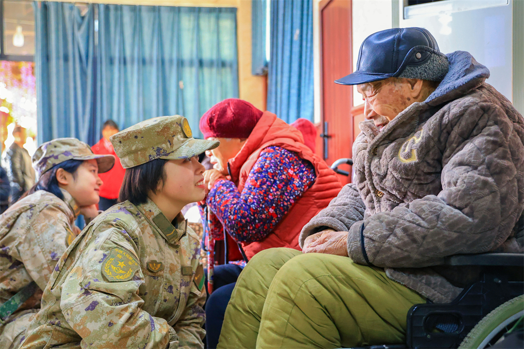 圖為第71集團(tuán)軍“攻堅(jiān)勁旅”組織官兵走進(jìn)駐地敬老院開展“送溫暖、送節(jié)目、送醫(yī)療”等“三送活動(dòng)”。
