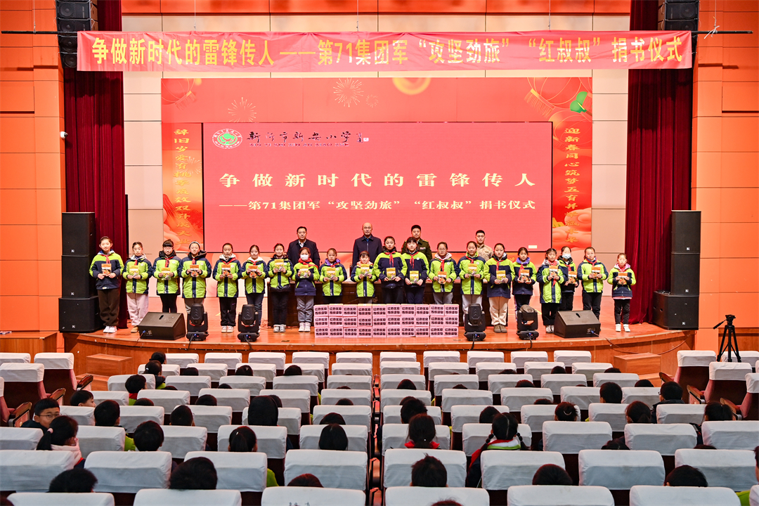 圖為第71集團(tuán)軍“攻堅(jiān)勁旅”組織官兵走進(jìn)駐地學(xué)校,開展捐贈(zèng)紅色書籍活動(dòng)。