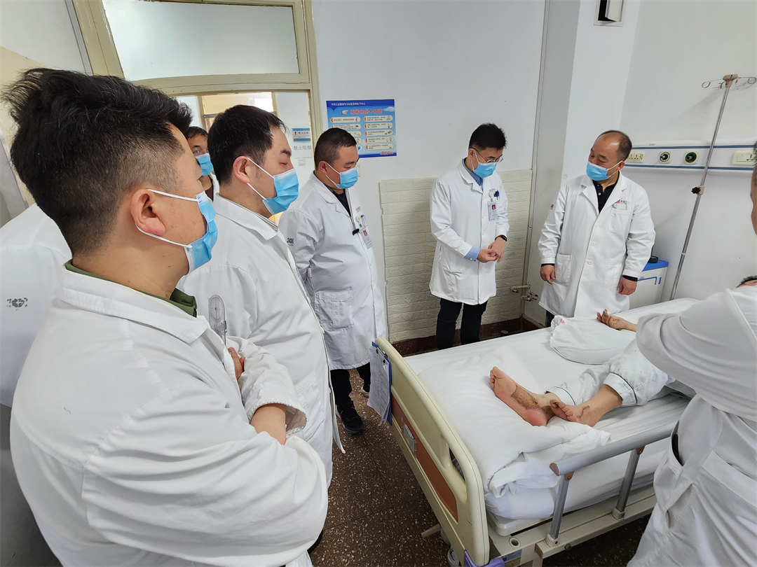 “您不用壓力太大,已經(jīng)是術(shù)后第5天了,沒有發(fā)生血管痙攣或者血栓,基本穩(wěn)定的血液循環(huán)說明在我們醫(yī)護(hù)團(tuán)隊(duì)精心治療和護(hù)理下,再植的手指已經(jīng)成活。用不了多久,您就能夠繼續(xù)干農(nóng)活啦!”張建政耐心向傷者解釋傷情恢復(fù)情況。