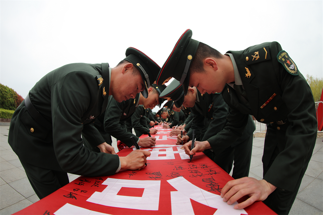 圖為3月28日,陸軍第71集團軍“臨汾旅”組織官兵代表在“緬懷革命先烈 奮進擔當使命”橫幅上簽字。萬里想 攝