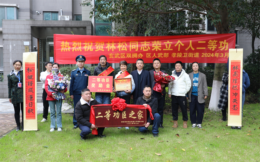 圖為3月26日,南京市玄武區(qū)軍地送喜小組為二等功臣家庭送上喜報和嵌名賀聯(lián)。賈玉川 攝