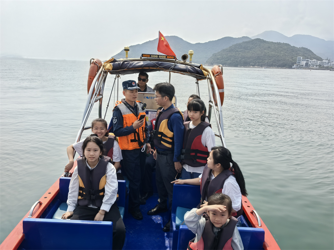 圖為執(zhí)法員正在甲板上進行國家安全主題討論交流。