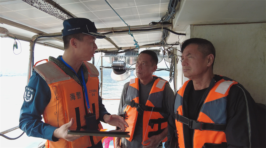 圖為執(zhí)法員向漁船民講解國家安全相關知識。