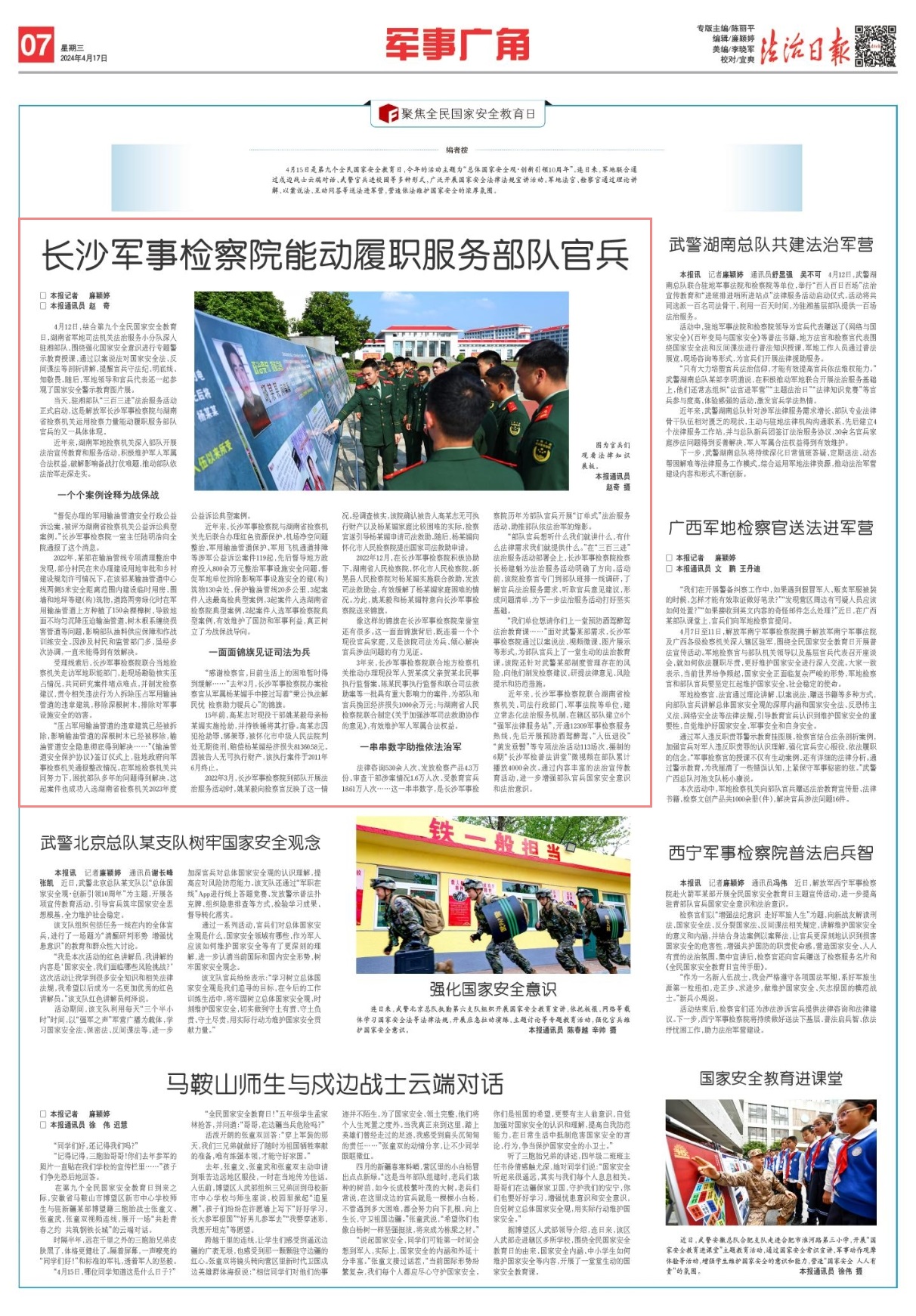 4月15日是第九個全民國家安全教育日,今年的活動主題為“總體國家安全觀·創(chuàng)新引領10周年”。連日來,軍地聯合通過戍邊戰(zhàn)士云端對話、武警官兵進校園等多種形式,廣泛開展國家安全法律法規(guī)宣講活動。軍地法官、檢察官通過理論講解、以案說法、互動問答等送法進軍營,營造依法維護國家安全的濃厚氛圍。