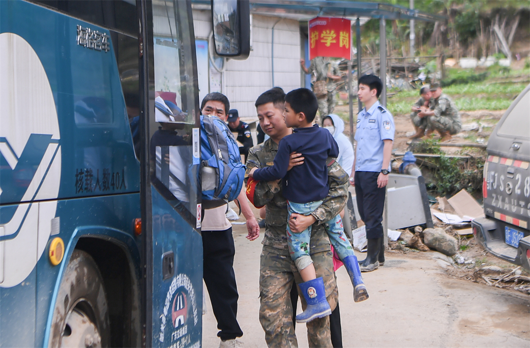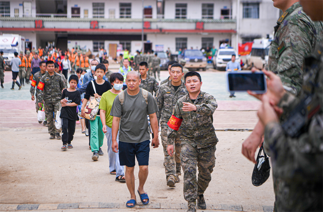 “把群眾都安全轉(zhuǎn)移了,我們就撤離。”24日17時30分,楊忠支隊長說,“不僅要確保群眾生命安全,還要把每一名戰(zhàn)友安全帶回去?!币鼓唤蹬R,暴雨傾盆而下,轉(zhuǎn)運完群眾的官兵猶如一條火龍向著韶關(guān)市區(qū)的方向前行。