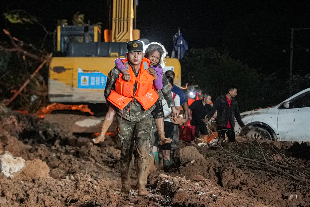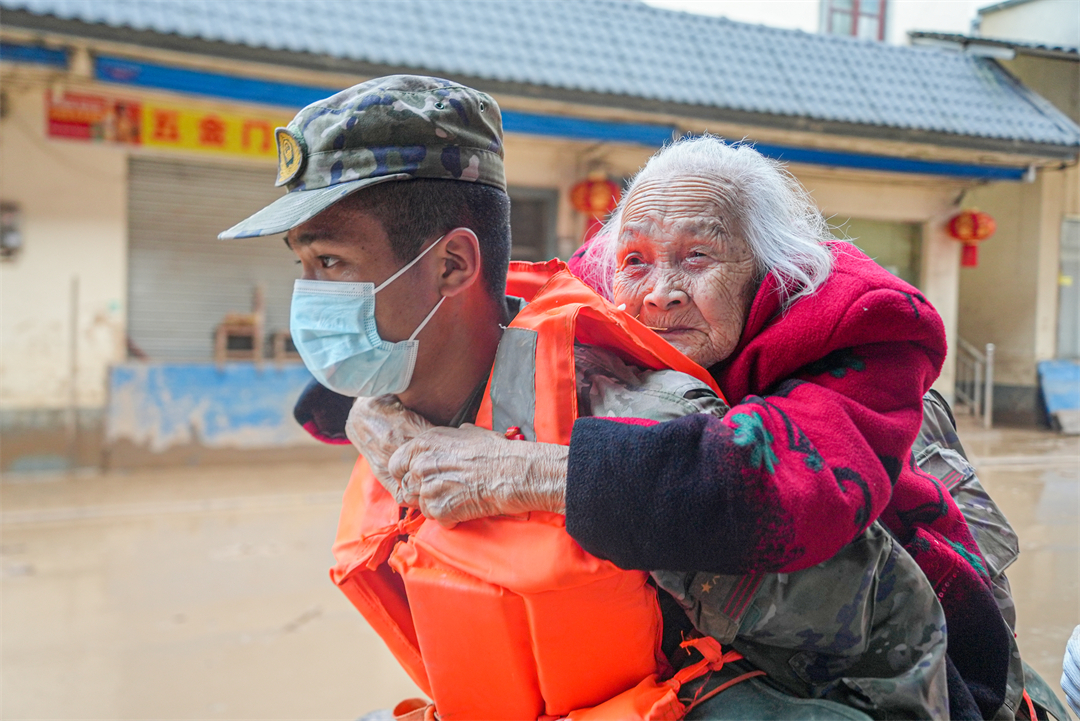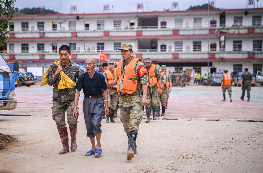 “凌晨6點天還沒亮,所有官兵就帶上干糧出發(fā)到各個村去疏散群眾?!睏钪艺f,江灣鎮(zhèn)下屬6個行政村有大大小小43個自然村,除情況最嚴(yán)重的梁屋村派出60人外,鍋溪村、圍坪村、江灣中心小學(xué)各派出30名兵力,胡屋村派出40名兵力,劃分若干個小組,聯(lián)合地方救援人員,按照先遣勘察、重裝開道、輕裝跟進(jìn)、觀察警戒的方式,逐村逐戶搜索勸離,剩余人員就在江灣中學(xué)和江灣鎮(zhèn)政府協(xié)助轉(zhuǎn)運群眾。
