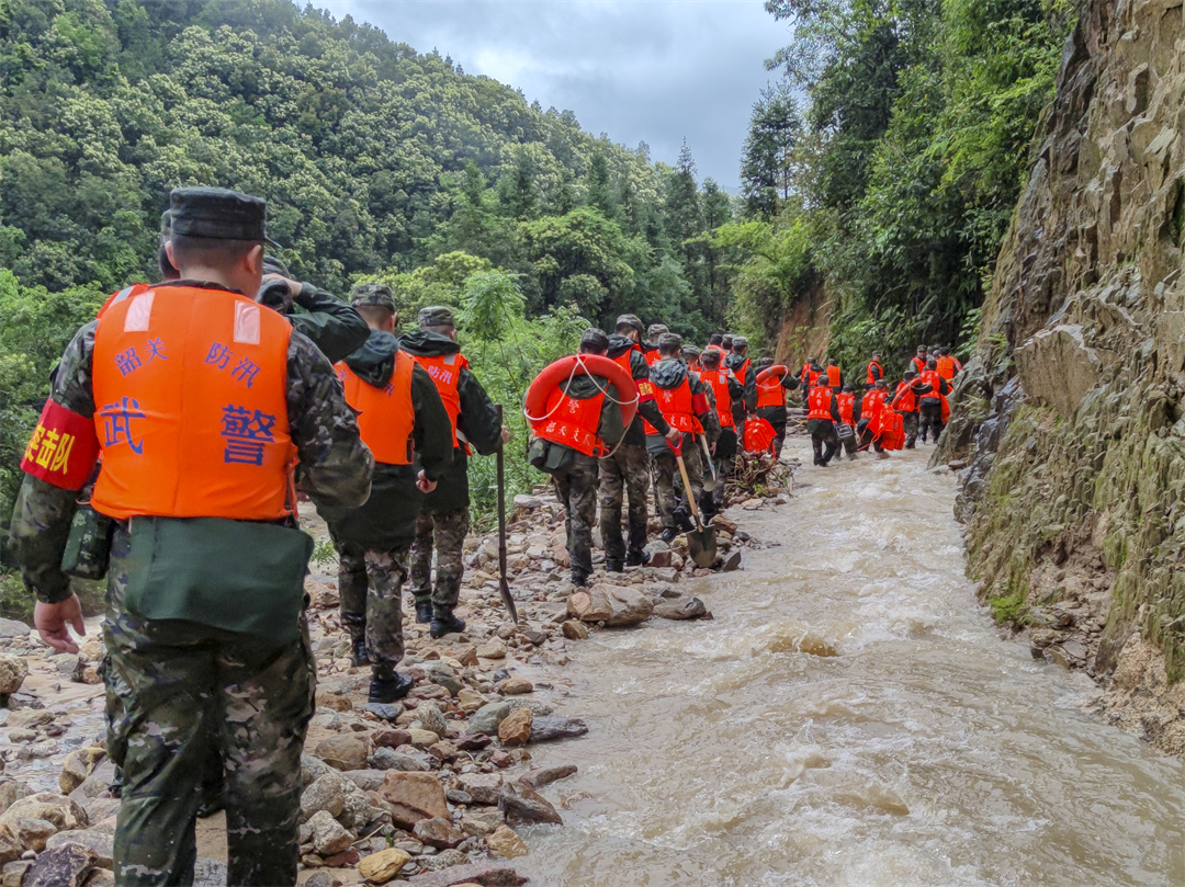災(zāi)害發(fā)生后,武警廣東總隊(duì)韶關(guān)支隊(duì)已累計(jì)派出300名官兵,攜帶搶險(xiǎn)救援物資器材前往救援。因開(kāi)進(jìn)路段受阻,車(chē)輛無(wú)法涉水通過(guò),現(xiàn)場(chǎng)指揮員立即帶領(lǐng)部分官兵徒步向任務(wù)地域開(kāi)進(jìn),參與江灣鎮(zhèn)搶險(xiǎn)救援行動(dòng)。
