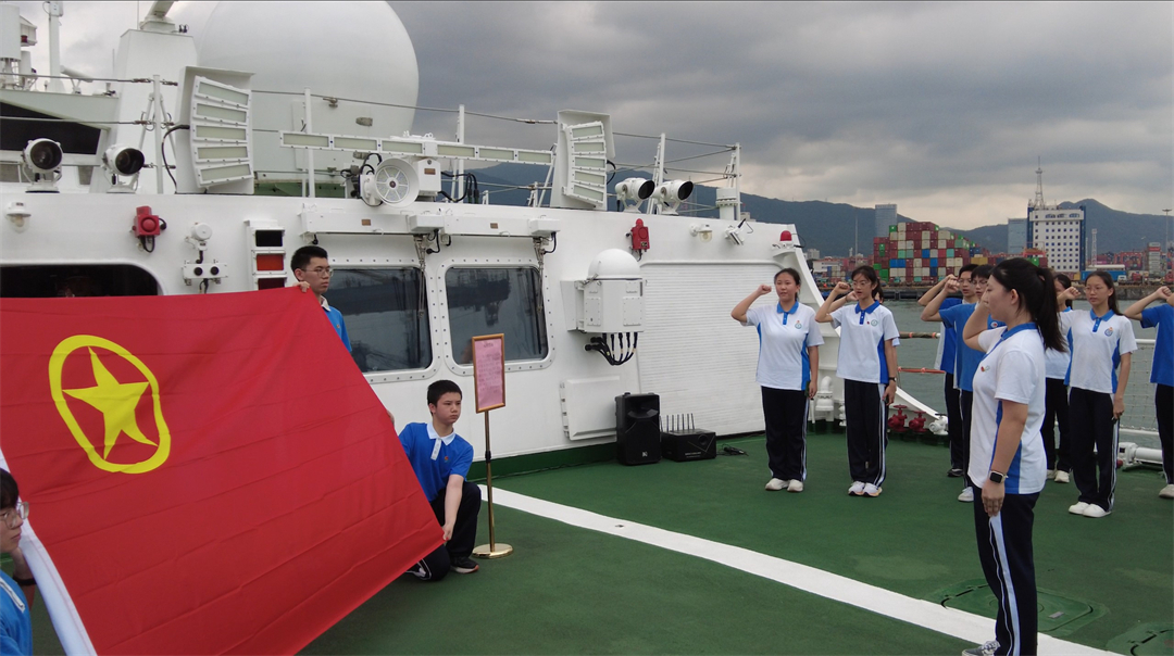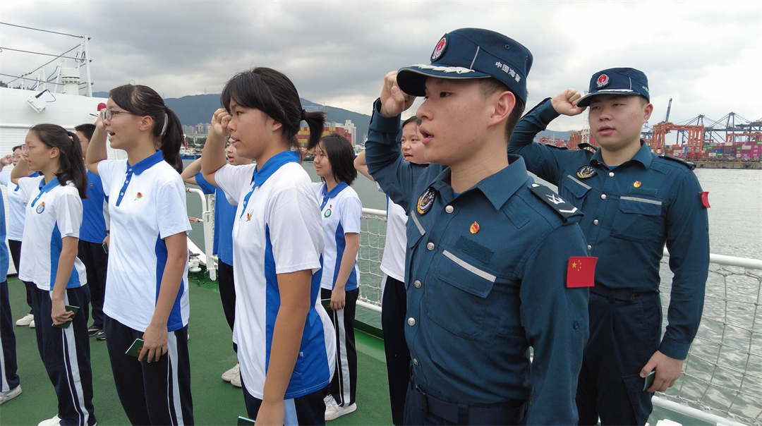 “我志愿加入中國共產(chǎn)主義青年團(tuán),堅決擁護(hù)中國共產(chǎn)黨的領(lǐng)導(dǎo)……”一聲聲堅定的誓言回蕩在大海上。五四青年節(jié)到來之際,廣東深圳海警局會同共青團(tuán)羅湖區(qū)委員會、羅湖區(qū)教育局及翠園教育集團(tuán)數(shù)十名學(xué)生代表,在深圳東部海域開展“青春心向黨·筑夢新時代”主題團(tuán)日活動暨羅湖區(qū)愛國主義教育綜合實踐基地揭牌儀式,引領(lǐng)廣大青少年弘揚(yáng)“五四”精神,感悟初心使命。