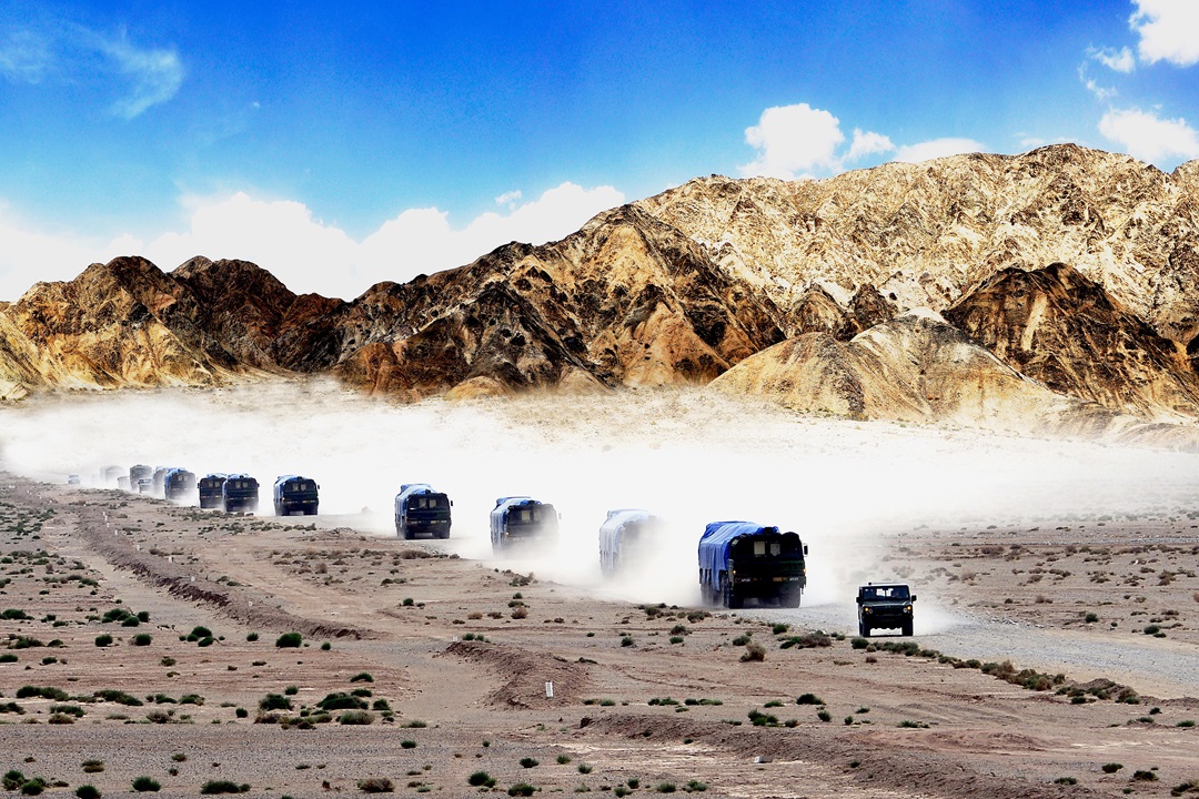 圖為火箭軍某導(dǎo)彈旅在大漠深處開展實(shí)戰(zhàn)演練。