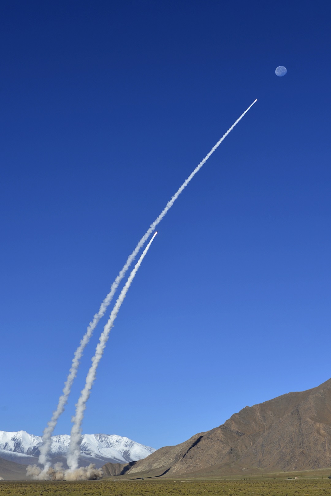 圖為火箭軍某導(dǎo)彈旅組織官兵開展多波次火力突擊演練。