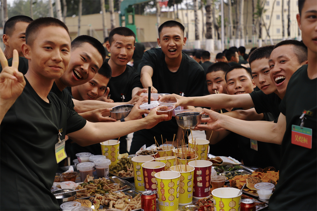 美食節(jié)當(dāng)天,壽星們登上舞臺(tái),互相戴上生日帽,與大家共同分享第一次在軍營(yíng)過(guò)生日的新鮮與喜悅。在場(chǎng)官兵紛紛為壽星送上祝福,整個(gè)軍營(yíng)沉浸在一片歡聲笑語(yǔ)中。
