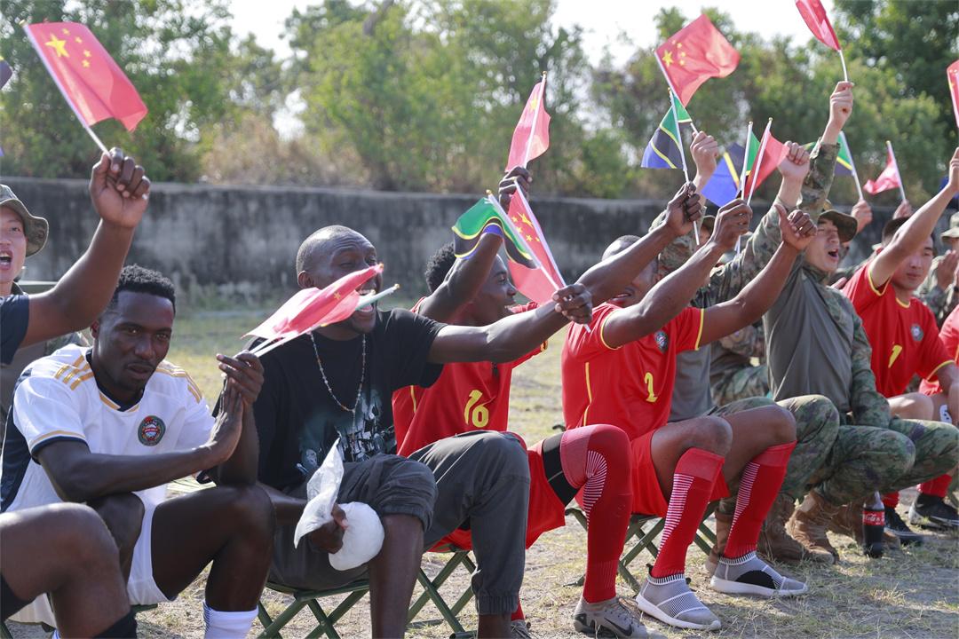 此次足球友誼賽中坦官兵混合編組、同臺競技,盡情揮灑激情與汗水,感受足球帶來的快樂,兩國情誼在足球的你來我往中不斷升華。