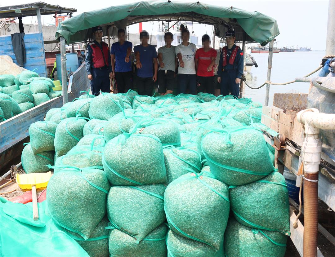 圖為8月15日,廣西北海海警局在轄區(qū)海域連續(xù)查獲兩起非法捕撈水產(chǎn)品案。