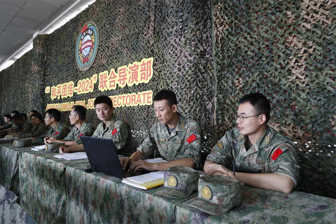 “中坦聯(lián)合作戰(zhàn)各群隊注意!為確保‘人質(zhì)’絕對安全,下面按計劃迅速展開核查詳查,精準掌握‘恐怖分子’具體位置和‘人質(zhì)’關押地點?!碑?shù)貢r間8月11日14時,“和平團結(jié)-2024”聯(lián)合演習陸上實兵演習正式開始。導演部下發(fā)導調(diào)文書,聯(lián)演指揮部發(fā)出指令,戰(zhàn)術指揮所迅速部署具體命令。