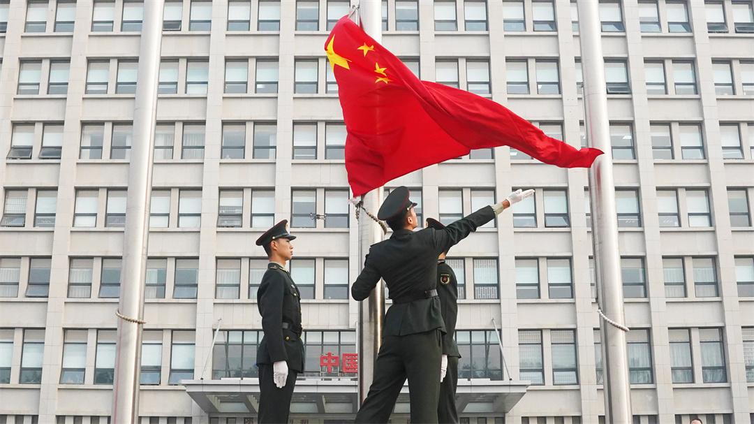 在雄壯激昂的《義勇軍進(jìn)行曲》中,五星紅旗冉冉升起,全體人員面向國旗莊嚴(yán)肅立,齊唱中華人民共和國國歌,在歌聲中對(duì)祖國深情告白,獻(xiàn)上對(duì)祖國最真摯的祝福。