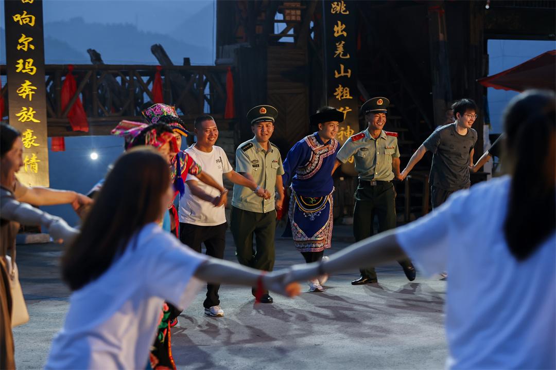 圖為武警北川中隊(duì)官兵同村民共同開展文藝活動,融洽軍民關(guān)系,促進(jìn)軍地共同發(fā)展,形成獨(dú)具特色富有成效的共建模式。