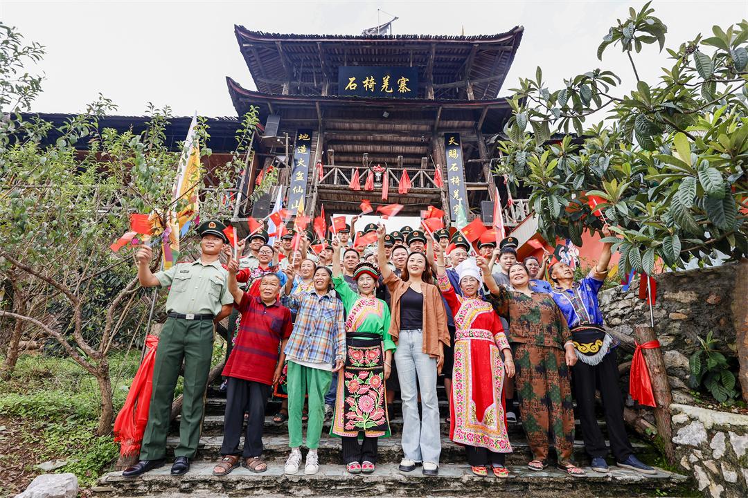 圖為武警北川中隊(duì)官兵與北川羌族人民在石椅羌寨合影留念。