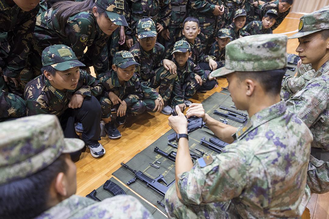 圖為武警廣東總隊開展“同心同行·強(qiáng)國有我”港澳青少年進(jìn)軍營活動,港澳青少年參觀武器裝備。劉佳良 金家威 攝