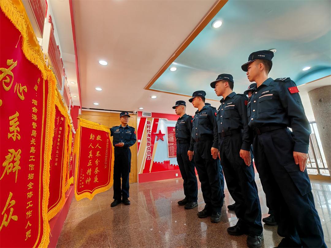圖為山東煙臺海警局長島工作站組織執(zhí)法員開展儀式教育。盧煜萱 攝