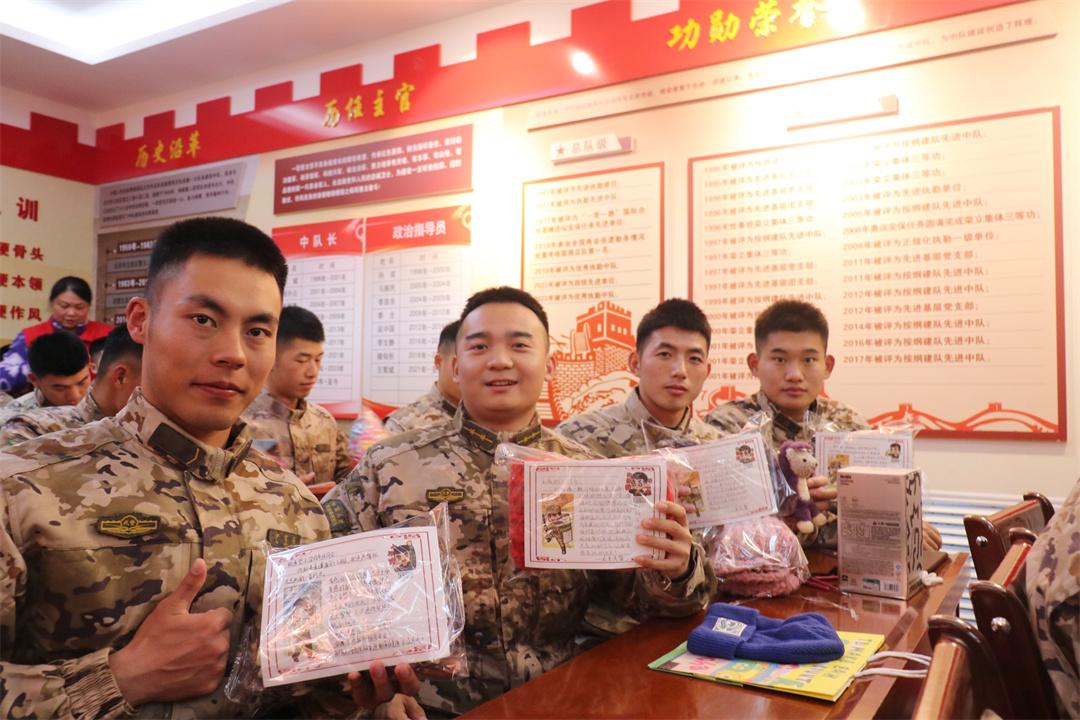近日,遠在北京的武警官兵們?yōu)樵颇鲜≌淹ㄊ星杉铱h一所希望小學四年級的學生們送上了一份份飽含深情的“溫暖包裹”。