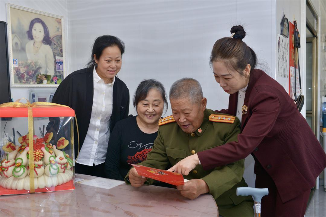 圖為看望慰問抗美援朝老兵,向抗美援朝老兵贈(zèng)送“大禮包”。