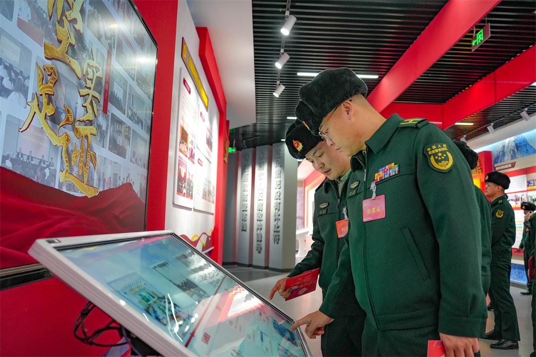 圖為武警官兵聆聽講解員講解。任勇 攝