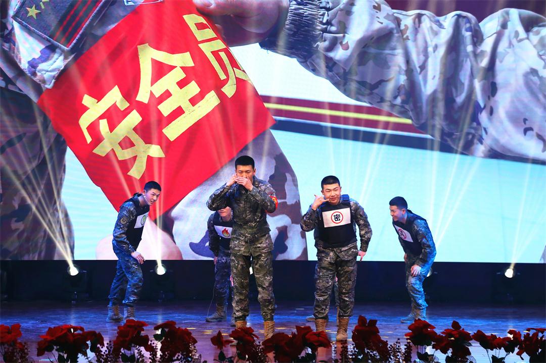 圖為小品《我是安全員》提醒官兵過節(jié)不忘安全弦。