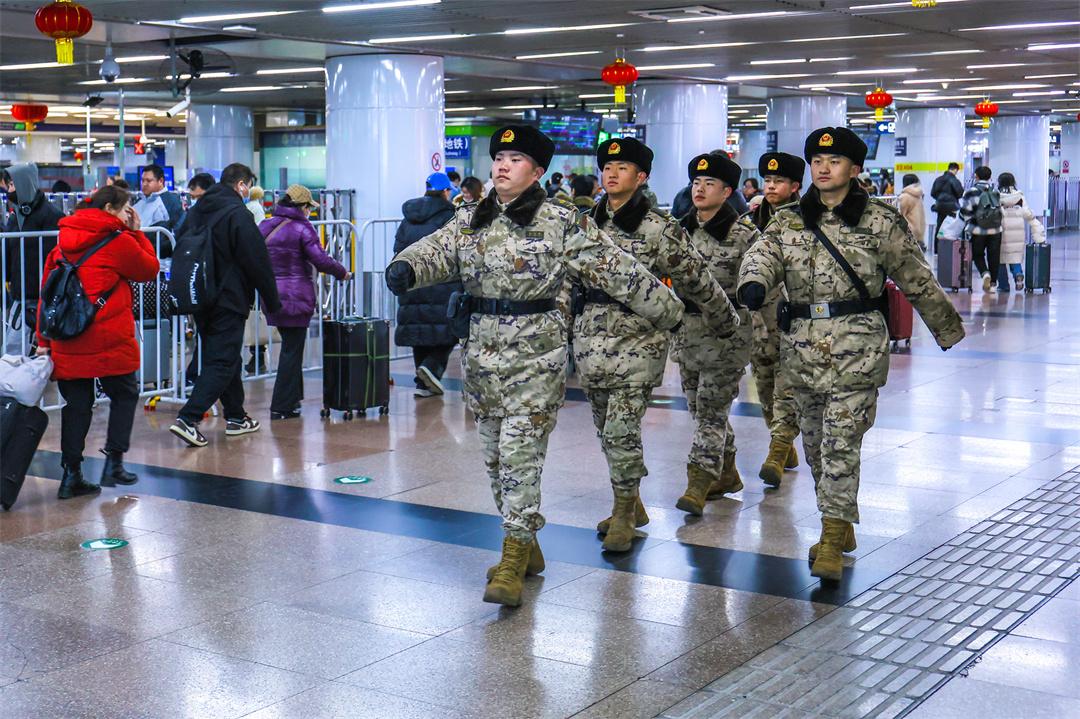 2月3日至6日,北京迎來返程客流高峰。為確保旅客安全順利抵京,擔(dān)負(fù)北京西站執(zhí)勤任務(wù)的武警北京總隊(duì)執(zhí)勤第六支隊(duì)官兵堅(jiān)守崗位,守護(hù)旅客出行平安。