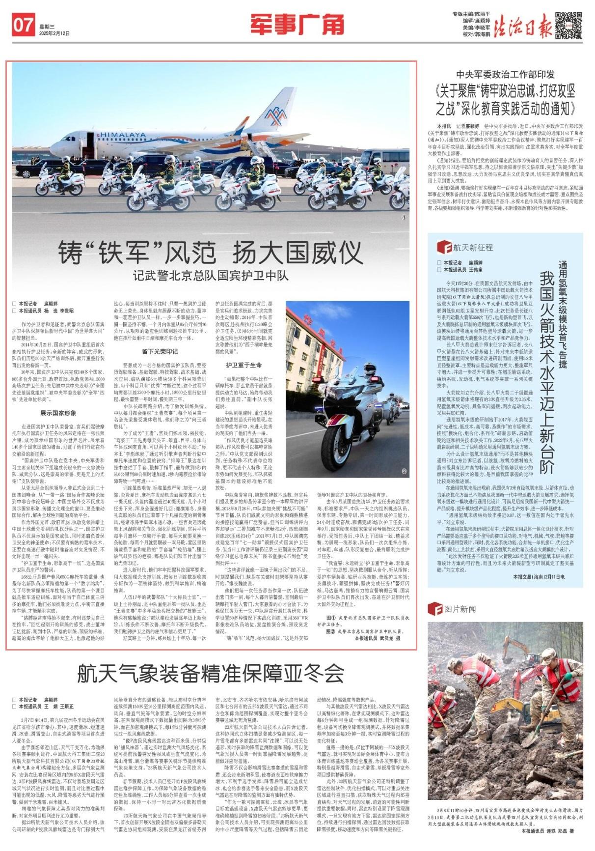 “我宣誓:永遠(yuǎn)樹立‘護(hù)衛(wèi)重于生命、形象高于一切’的思想,堅(jiān)決做到服從命令,聽從指揮;愛(ài)護(hù)車輛裝備,鉆研業(yè)務(wù)技能,苦練護(hù)衛(wèi)本領(lǐng);英勇戰(zhàn)斗,頑強(qiáng)拼搏,堅(jiān)決完成任務(wù)!”警燈閃爍、馬達(dá)轟鳴,鏗鏘有力的宣誓響徹云霄,國(guó)賓護(hù)衛(wèi)中隊(duì)隊(duì)員們?cè)俅纬霭l(fā),奮進(jìn)在護(hù)衛(wèi)新時(shí)代大國(guó)外交的征程上。