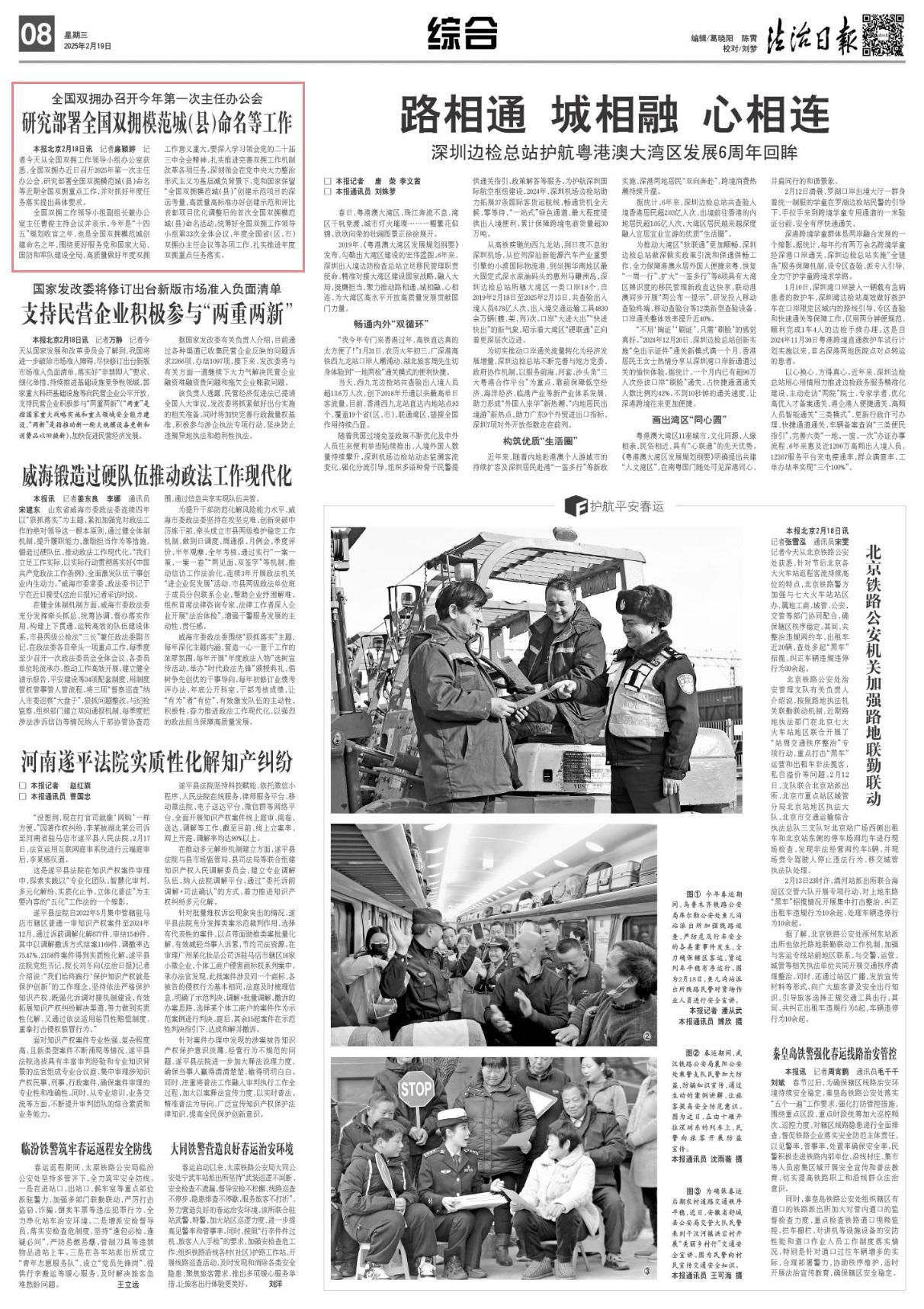 記者2月18日從全國雙擁工作領(lǐng)導(dǎo)小組辦公室獲悉,全國雙擁辦近日召開2025年第一次主任辦公會,研究部署全國雙擁模范城(縣)命名等近期全國雙擁重點工作,并對抓好年度任務(wù)落實提出具體要求。