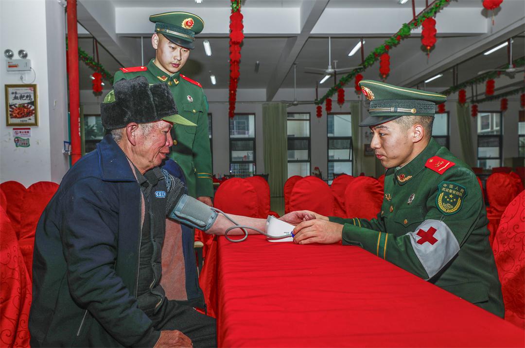 圖為武警官兵為老人測量血壓。