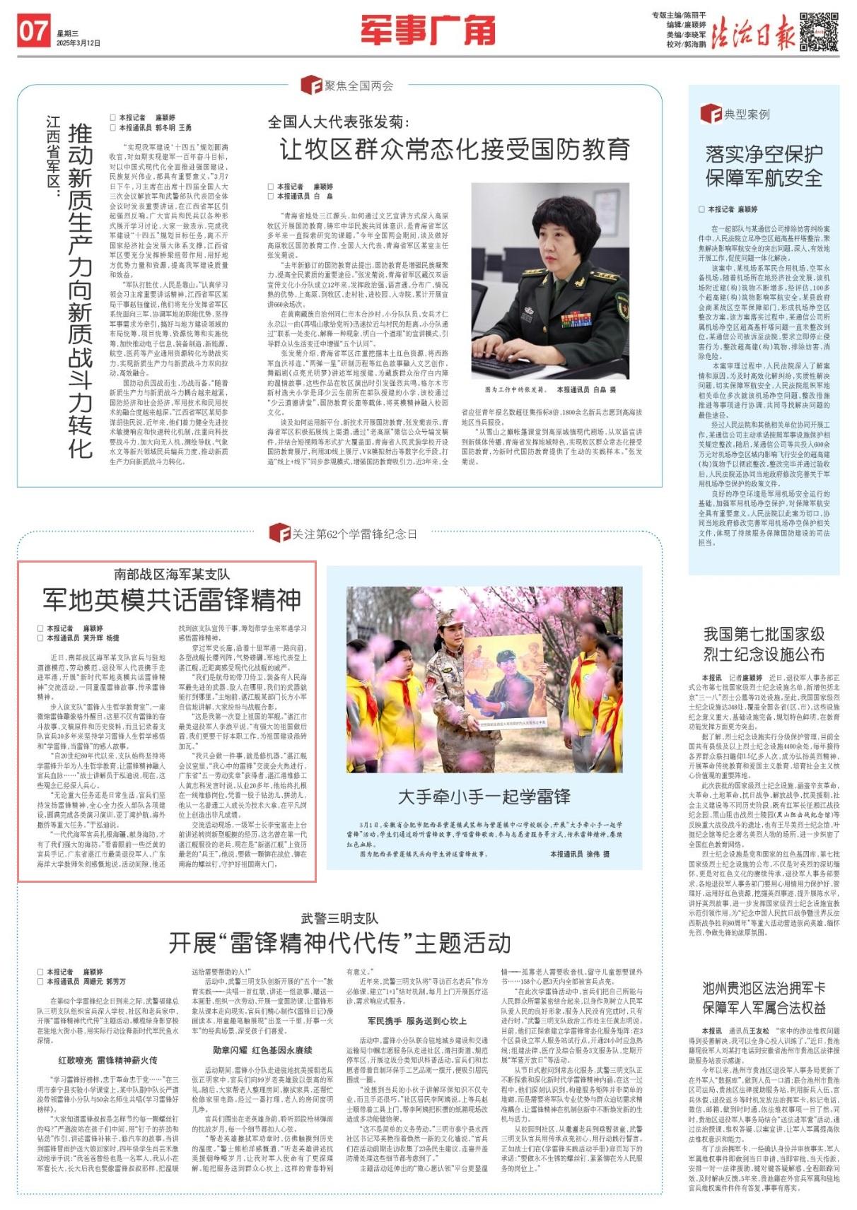 “無論重大任務(wù)還是日常生活,官兵們堅持發(fā)揚雷鋒精神,全心全力投入部隊各項建設(shè),圓滿完成各類演習(xí)演訓(xùn)、亞丁灣護(hù)航、海外撤僑等重大任務(wù)。”于泓迪說。