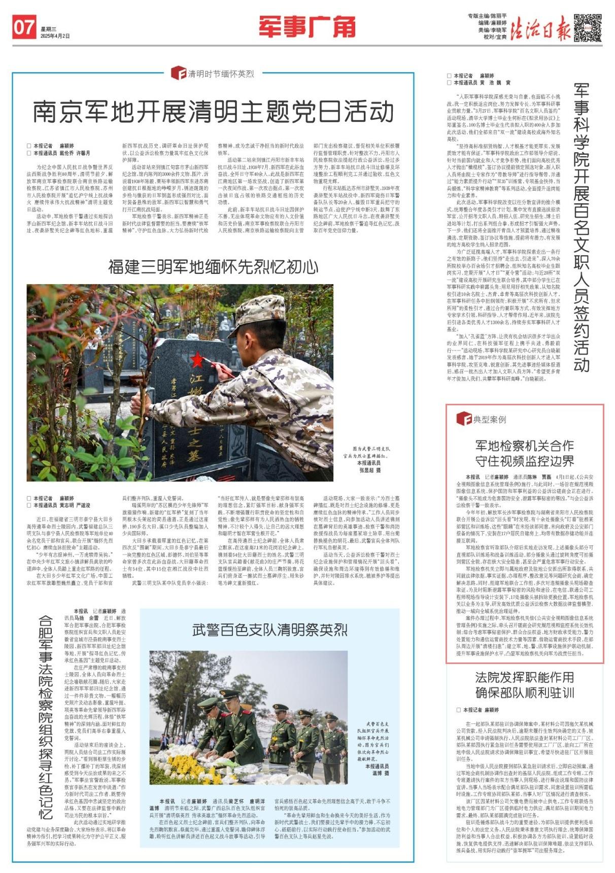案件辦理過程中,軍地檢察機關借《公共安全視頻圖像信息系統(tǒng)管理條例》實施之際,牽頭召開磋商會研究規(guī)范視頻監(jiān)控系統(tǒng)長效機制;綜合考慮軍事秘密保護、群眾合法權益、地方財政承受能力、警力處置能力和通信運營商技術力量等因素,借助運營商技術手段,在部隊周邊開展“清樓掃患”;建立軍、地、警、訊軍事設施保護聯(lián)動機制,提升軍事設施保護水平,凸顯軍地檢察機關向軍為戰(zhàn)責任擔當。