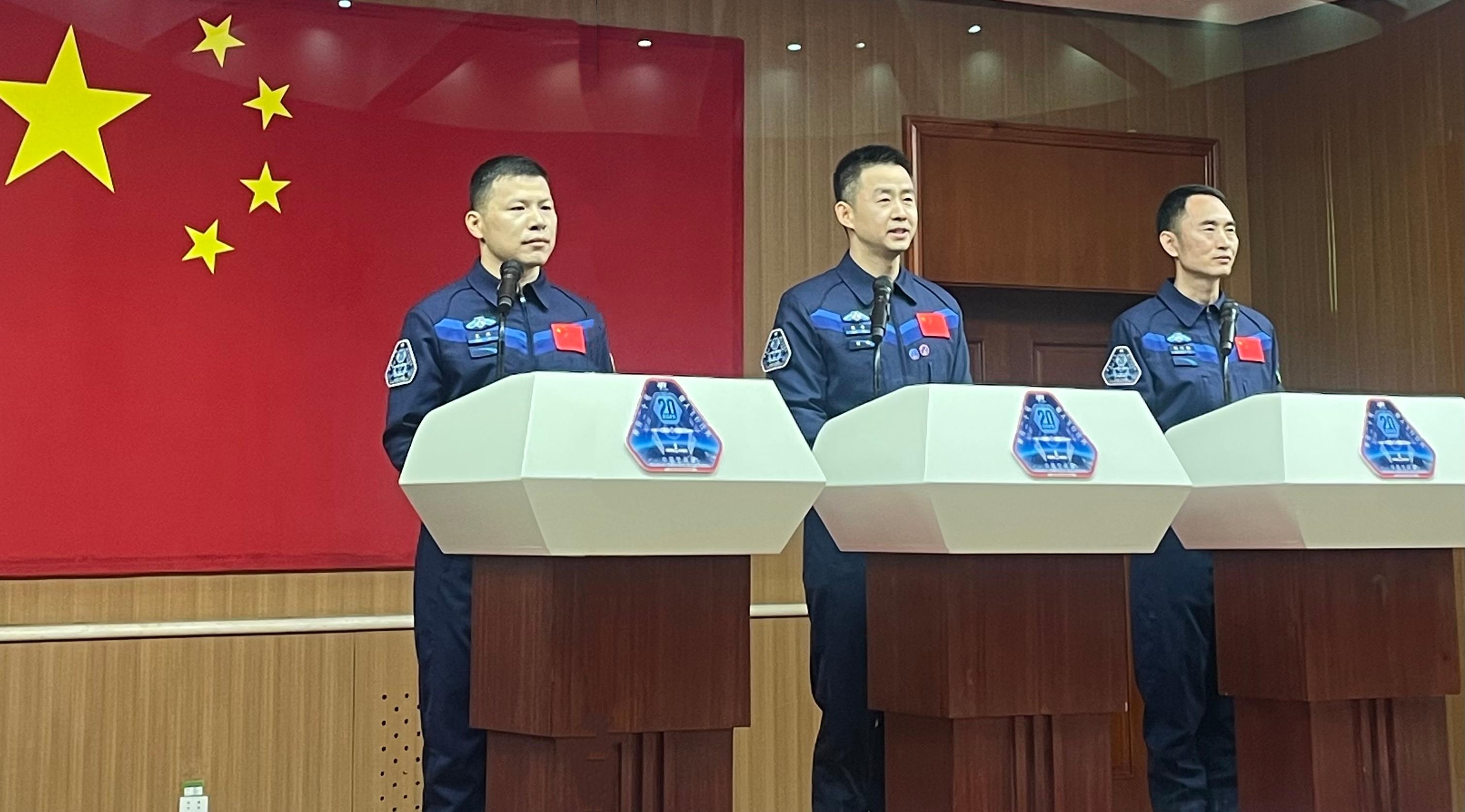 4月23日11時,陳冬、陳中瑞、王杰3名乘組航天員在酒泉衛(wèi)星發(fā)射中心問天閣與中外媒體記者集體見面,并回答記者提問。這是神舟二十號飛行乘組的首次亮相。