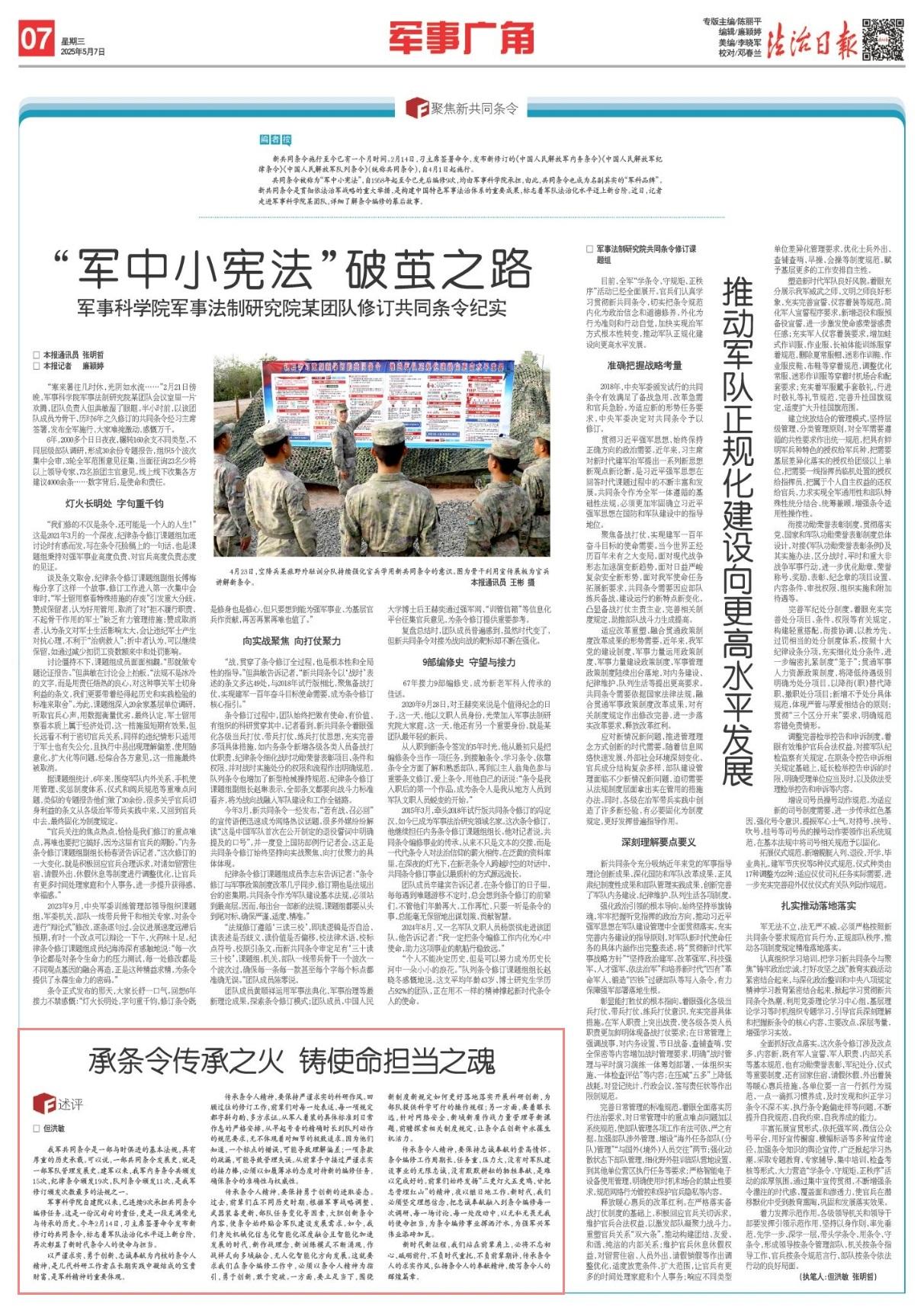 傳承條令人精神,要保持嚴(yán)謹(jǐn)求實(shí)的科研作風(fēng)。回顧過往的修訂工作,前輩們對(duì)每一處表述、每一項(xiàng)規(guī)定都字斟句酌、多方求證。從軍人著裝的具體標(biāo)準(zhǔn)到日常作息的嚴(yán)格安排,從早起號(hào)音的精確時(shí)長(zhǎng)到隊(duì)列動(dòng)作的規(guī)范要求,無不體現(xiàn)著對(duì)細(xì)節(jié)的極致追求。因?yàn)樗麄冎溃粋€(gè)標(biāo)點(diǎn)的錯(cuò)誤,可能導(dǎo)致理解偏差;一項(xiàng)條款的疏漏,可能導(dǎo)致管理失誤。從前輩手中接過嚴(yán)謹(jǐn)求實(shí)的接力棒,必須以如履薄冰的態(tài)度對(duì)待新的編修任務(wù),確保條令的準(zhǔn)確性與權(quán)威性。