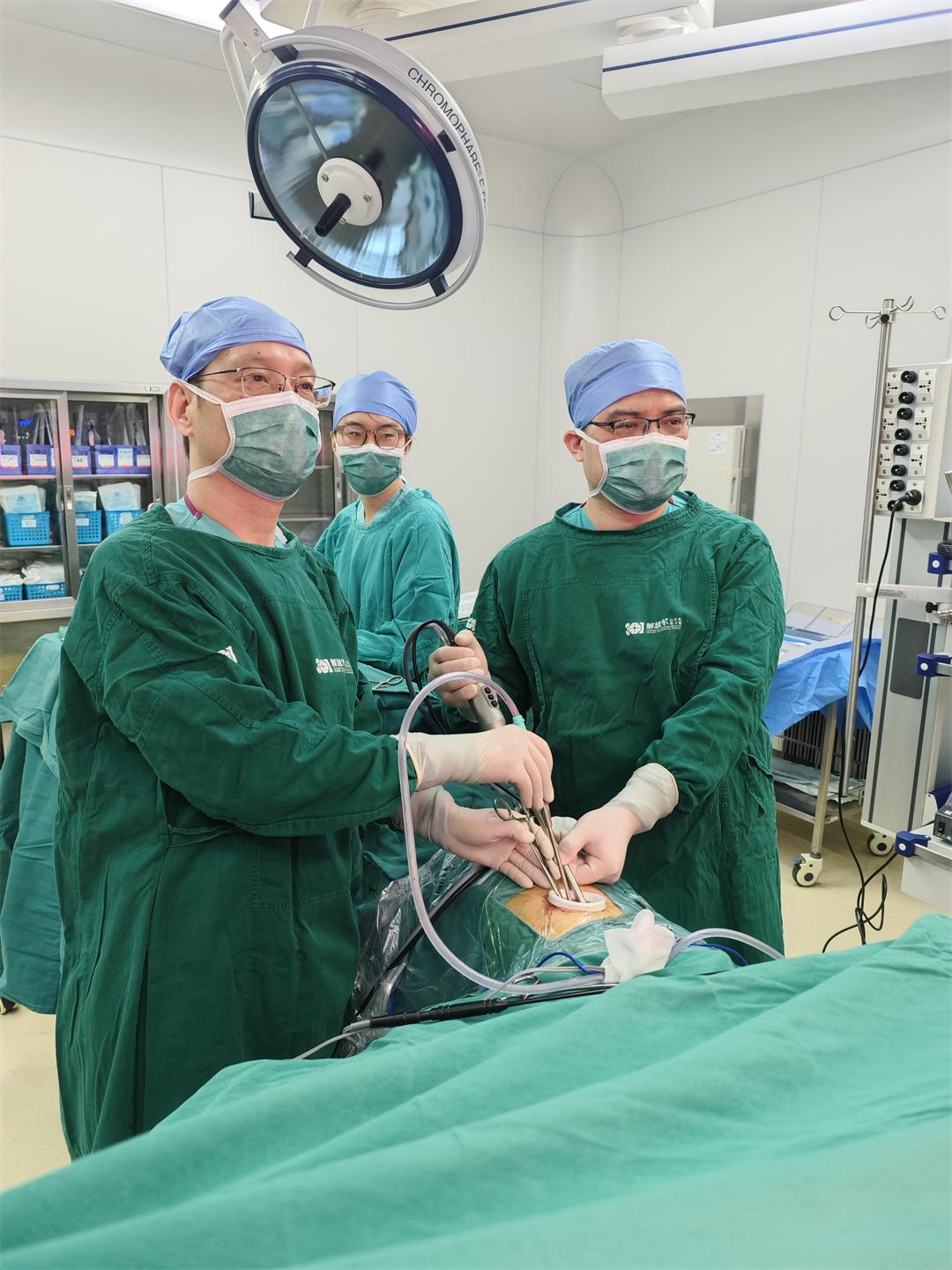 宋偉安帶領(lǐng)團(tuán)隊反復(fù)研究胸部CT和病情資料,并與麻醉科、外科ICU等多學(xué)科協(xié)作,制定詳細(xì)的圍手術(shù)期應(yīng)急預(yù)案。今年2月19日下午,手術(shù)開始。在胸腔鏡輔助下,宋偉安團(tuán)隊精準(zhǔn)操作,逐步完成開胸、剖開心包、游離神經(jīng)、分離肺動脈圓錐、阻斷肺動脈主干等關(guān)鍵步驟。經(jīng)過3個多小時努力,團(tuán)隊成功切除肺門根部侵入心包的惡性腫瘤,并徹底清掃了轉(zhuǎn)移的淋巴結(jié)。