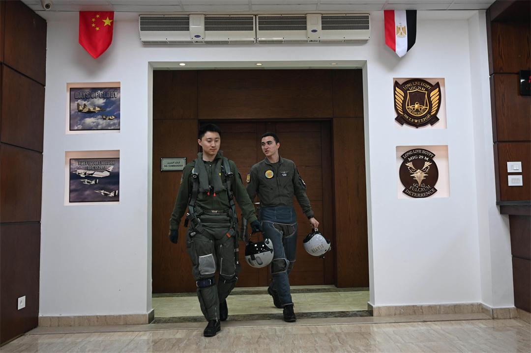 圖為參加中?!拔拿髦?2025”空軍聯合訓練的中埃雙方飛行員并肩前行。余紅春 攝
