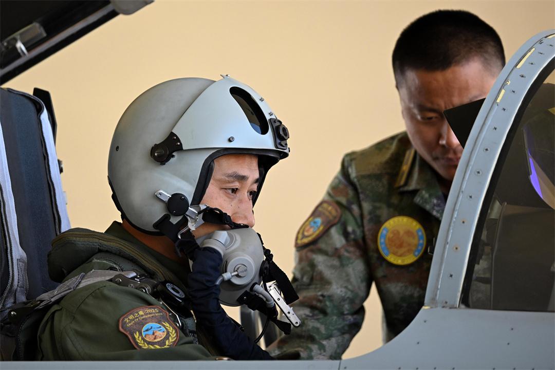 圖為4月19日,埃及空軍某基地,參加中埃“文明之鷹-2025”空軍聯合訓練的中國空軍飛行員進行起飛前檢查。余紅春 攝