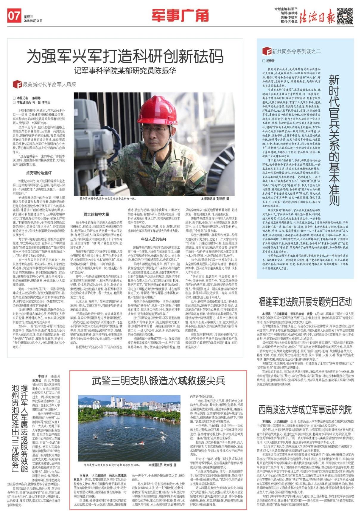 近日,武警福建總隊三明支隊結(jié)合駐地水文特點,組織舟艇操作骨干集訓(xùn),重點圍繞搶險救援中可能出現(xiàn)的險情、災(zāi)情,進(jìn)行針對性強(qiáng)化訓(xùn)練,確保遇有情況能夠第一時間拉得出、打得贏。